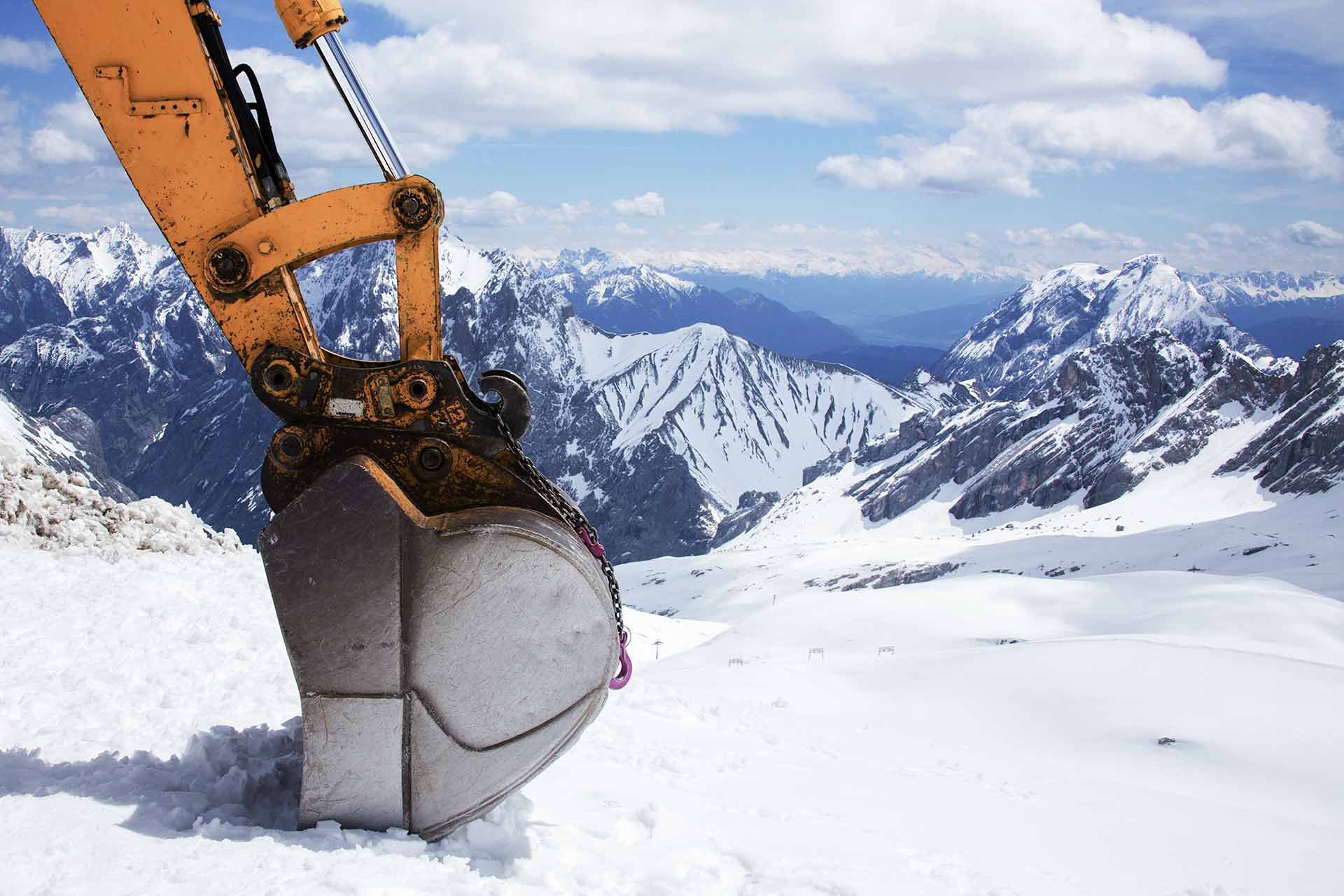 Genauso außergewöhnlich wie das fertige Bauwerk gestaltete sich bereits die Baustelle auf dem höchsten Gipfel Deutschlands. Unberechenbares Wetter, die Höhenlage und jede Menge logistische Herausforderungen verlangten den beteiligten Unternehmen alles ab. Dazu kam extremer Platzmangel, zum Beispiel für den Baukran. Er konnte letztlich auf 2.950 m errichtet werden und überragte mit seinem Ausleger das auf 2.962 m Höhe stehende goldene Gipfelkreuz um 13 m. Der Kran war die zentrale Drehscheibe, um Beton, Stahl oder Glas auf der Baustelle zu verteilen. Für den Nachschub sorgte dabei eine parallel zur neuen Trasse verlaufende Materialseilbahn.